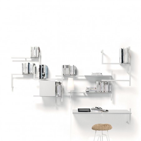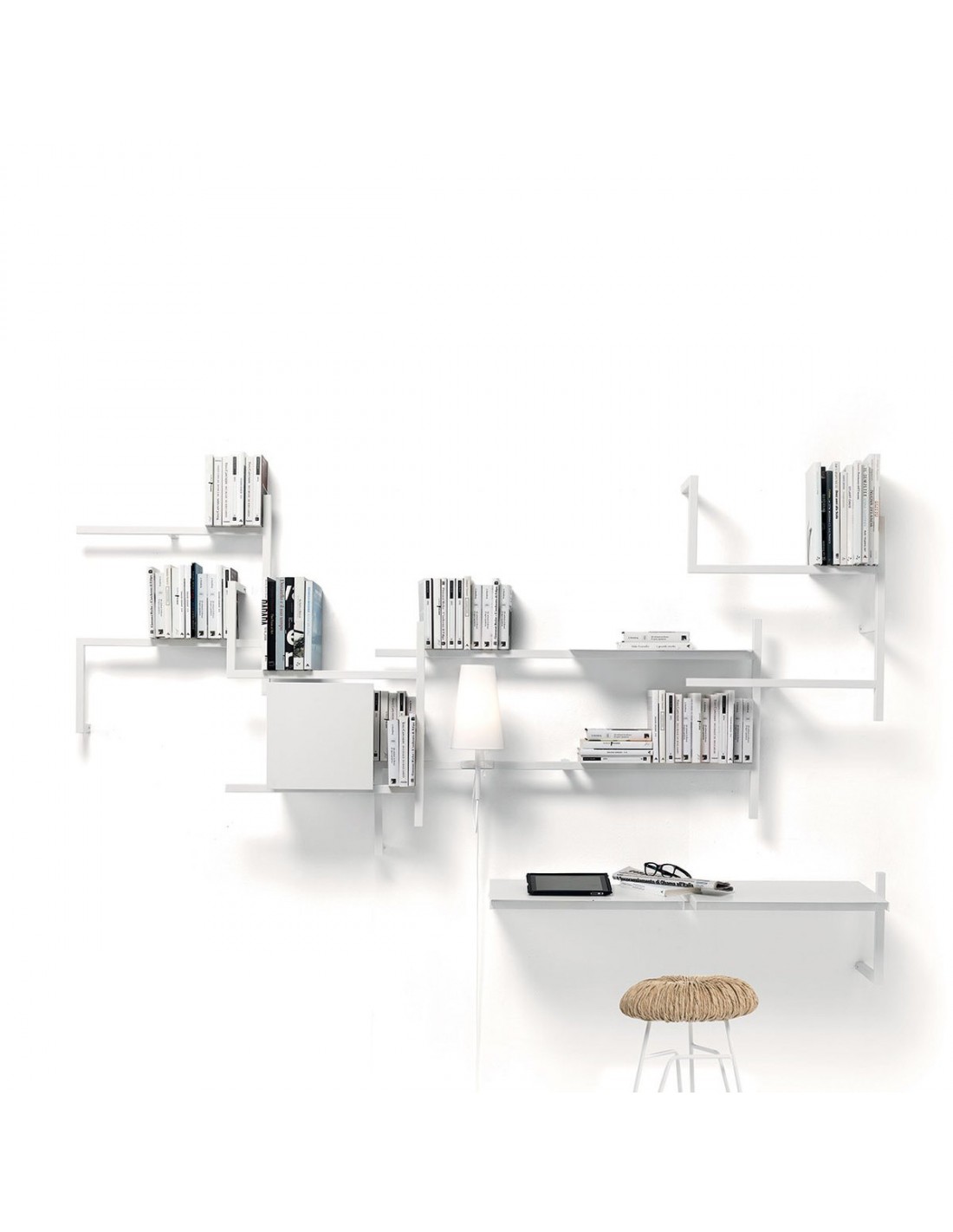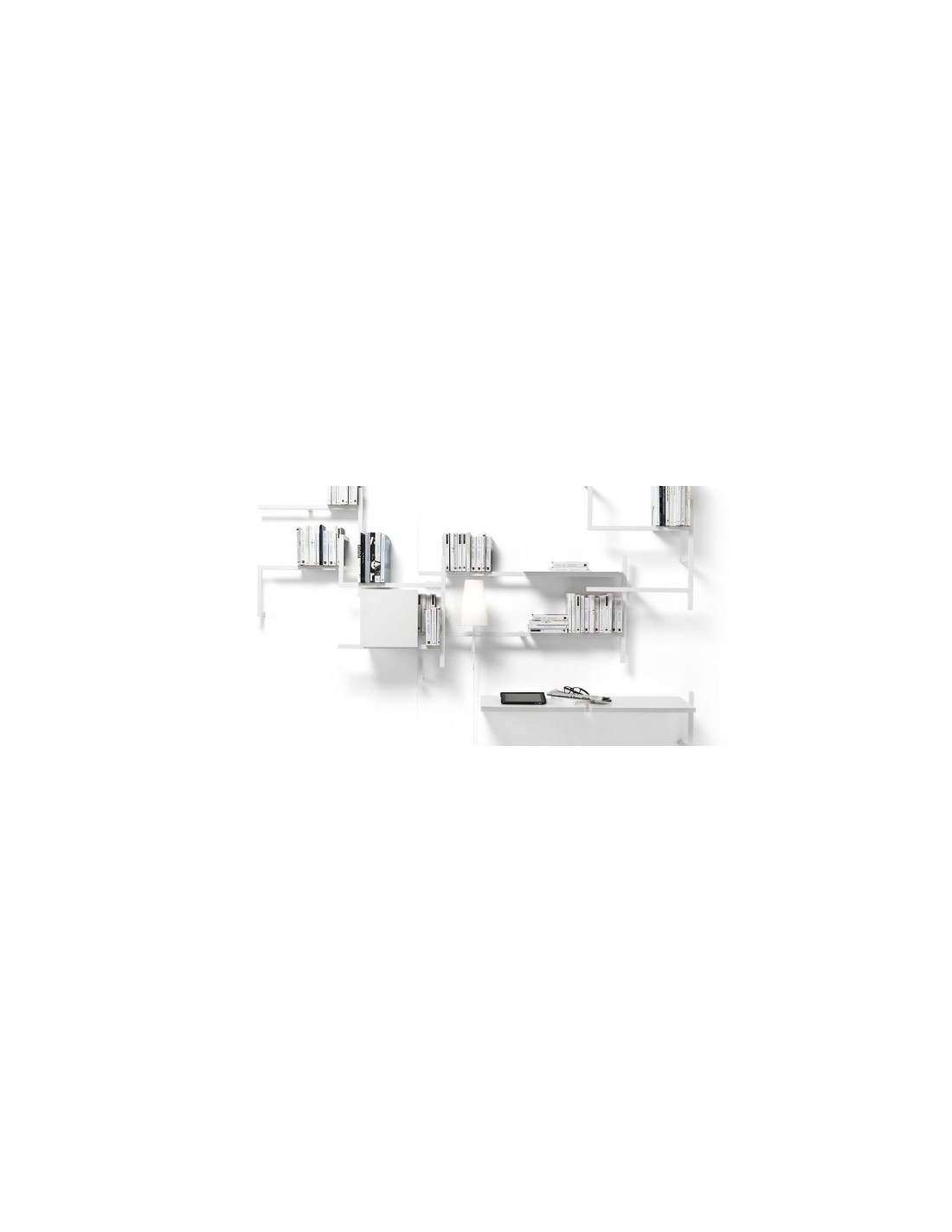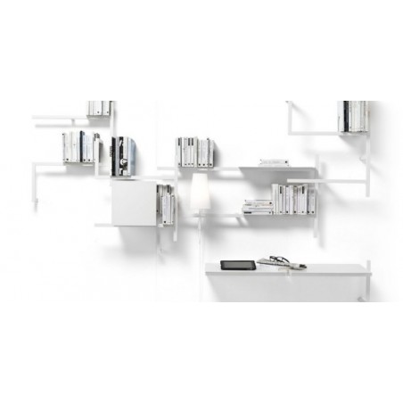 ANTOLOGIA è una libreria innovativa progettata da STUDIO 14 per il brand MOGG. Questo originale sistema di libreria, consente di personalizzare le proprie pareti posizionando uno o più moduli, da sfruttare tutti gli angoli e permettendo di sovrapporre gli elementi tra di loro. La struttura è un tubolare quadrato 2,5 x 2,5 cm con finitura verniciata bianco opaco oppure piombo lucido. Ogni modulo è provvisto di distanziali a muro che ne consentono l'ancoraggio tramite dei tasselli.