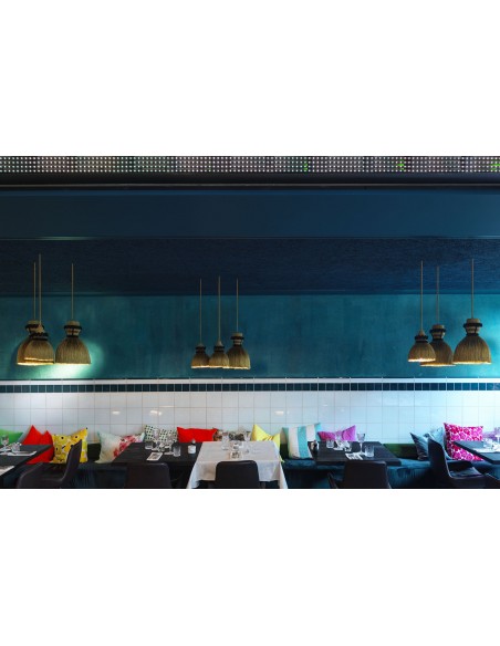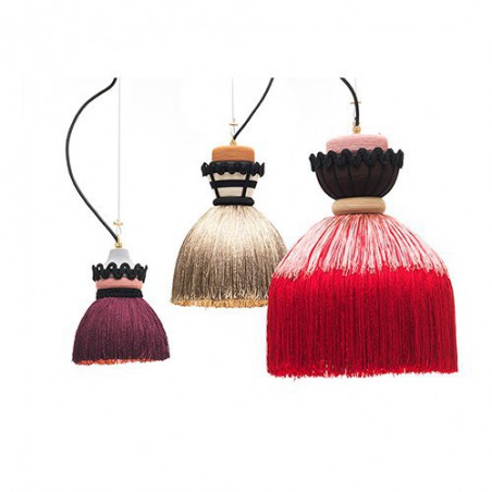 Madama è una stupenda lampada a sospensione dal tocco retrò. Il designer si è ispirato all' abbigliamento tipico del XIX secolo.