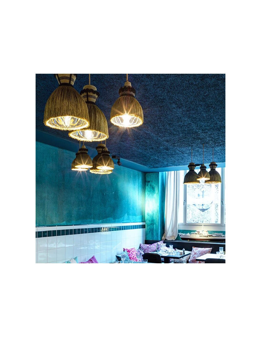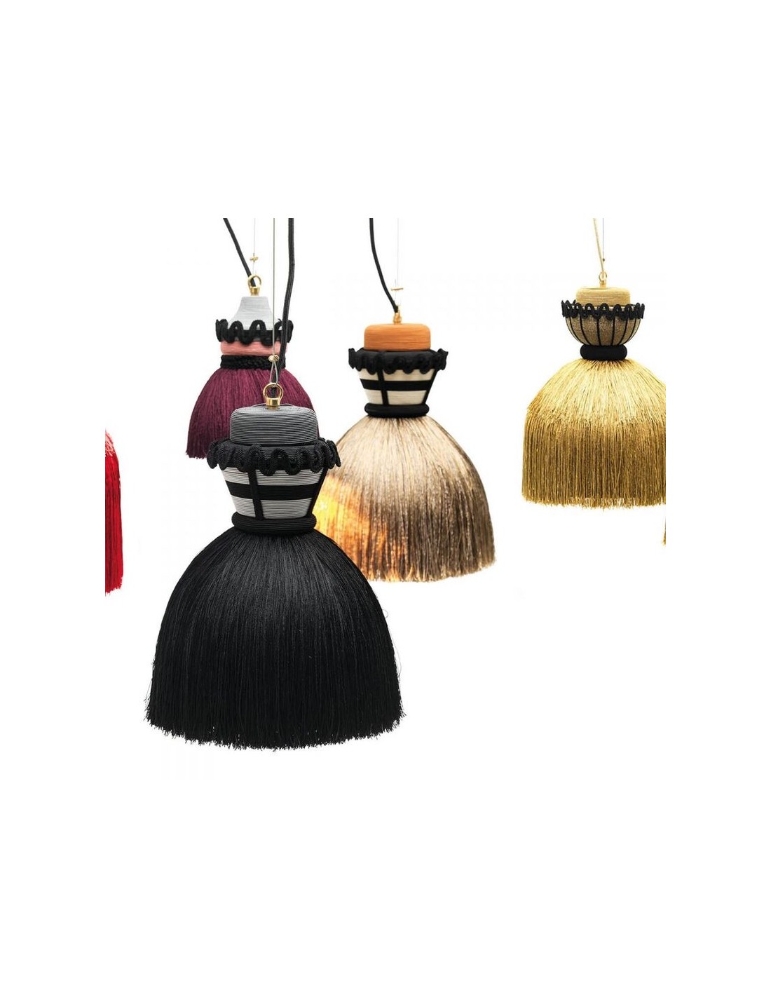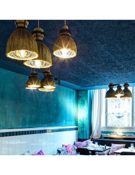 - Paralume in metallo rivestito in frange di tessuto