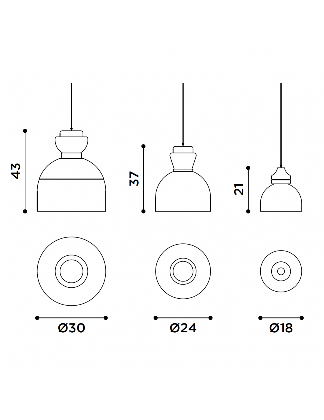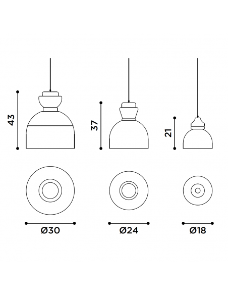 - Dimensioni : Ø 18 x H. 21, Ø 24 x H. 37, Ø 30 x H. 43 cm