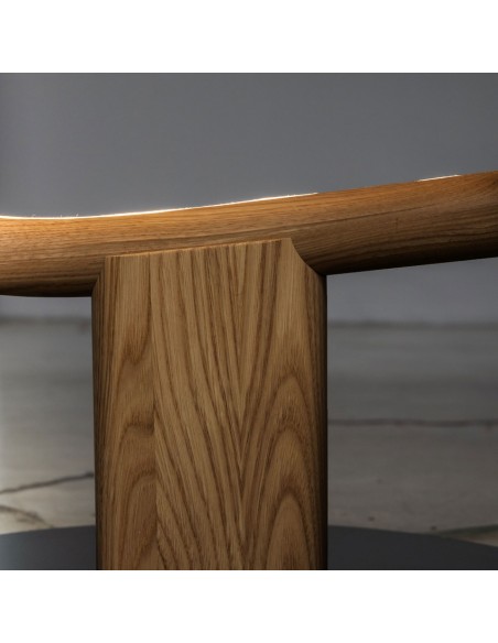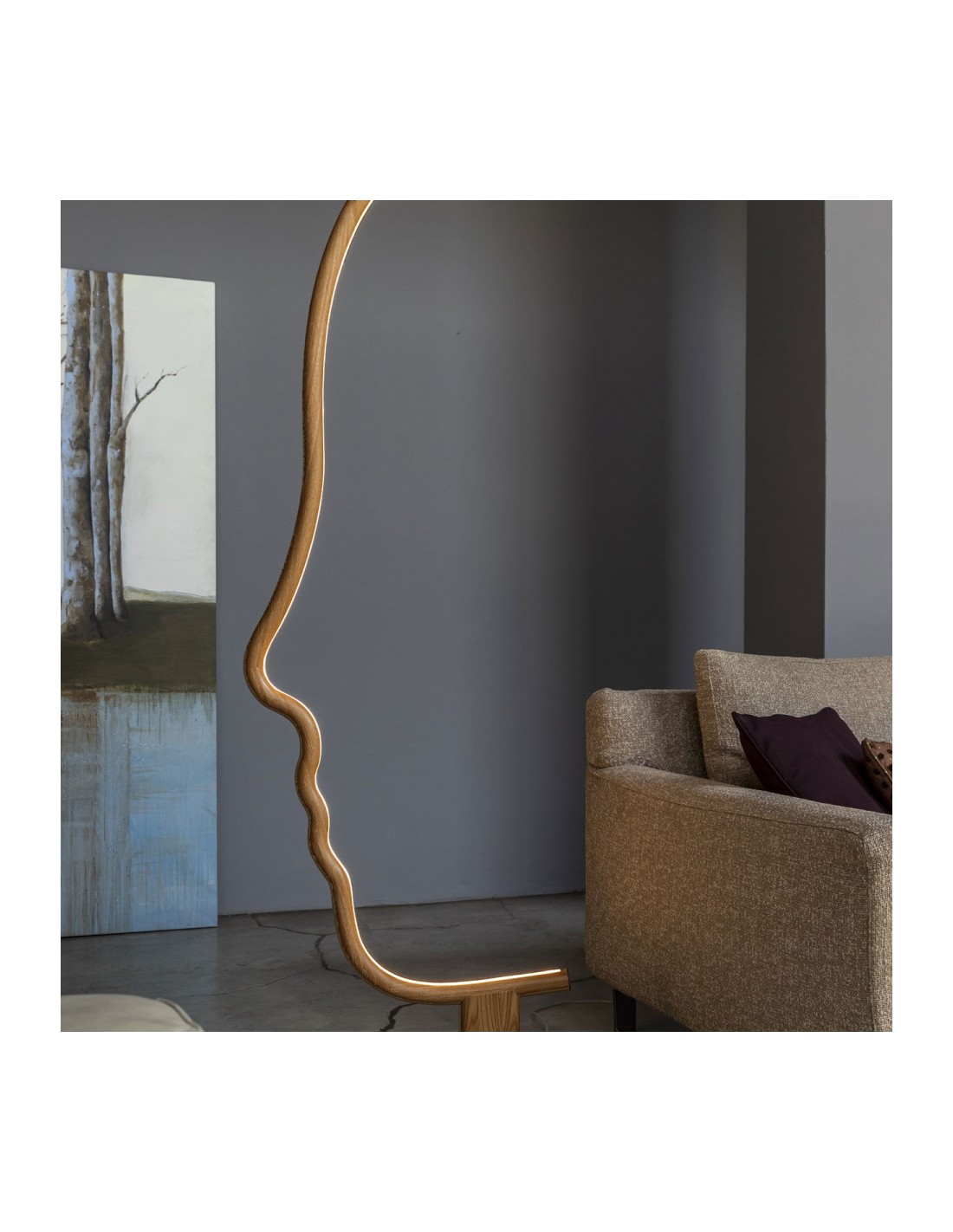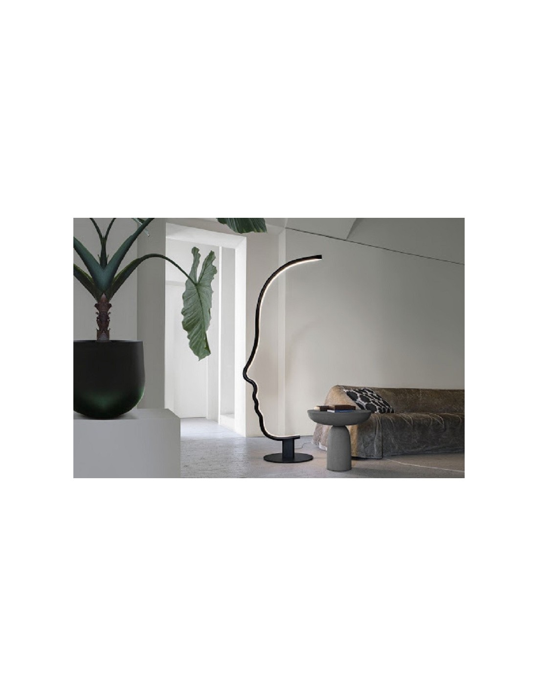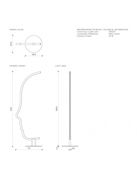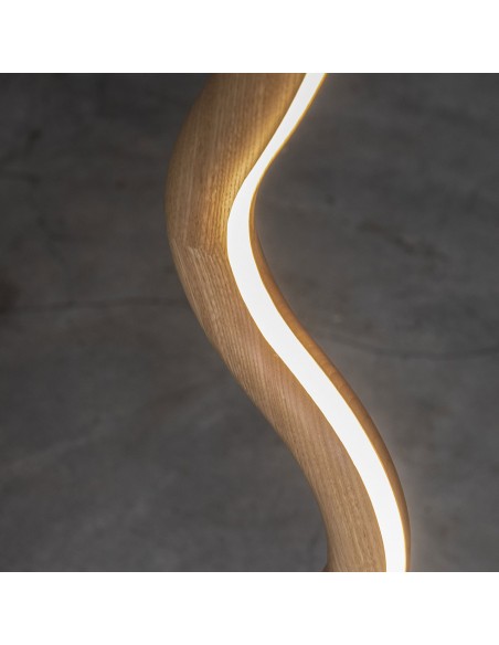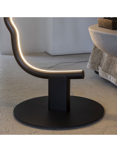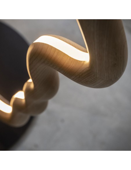 VIS A VIS è una lampada da terra dal forte segno grafico che vuole essere una micro-installazione domestica, pur mantenendo le qualità funzionali della lampada. All'interno della struttura a forma di viso, è istallata una striscia a led che illumina con stile il vostro ambiente. La struttura in legno è disponibile in legno laccato nero o castagno ed è sorretta da una base in metallo nero.