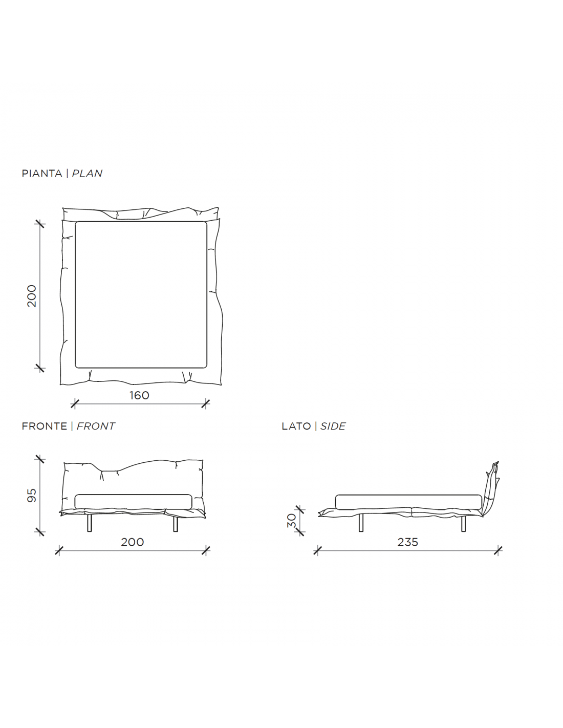- Dimensioni : L. 200 x P. 225 x H. 95 cm - L. 220 x P. 225 x H. 95 cm