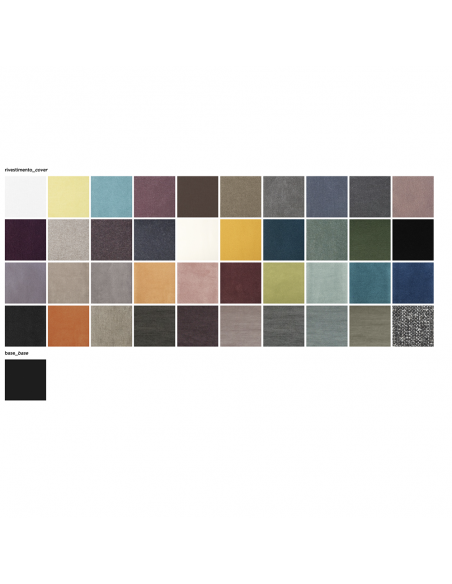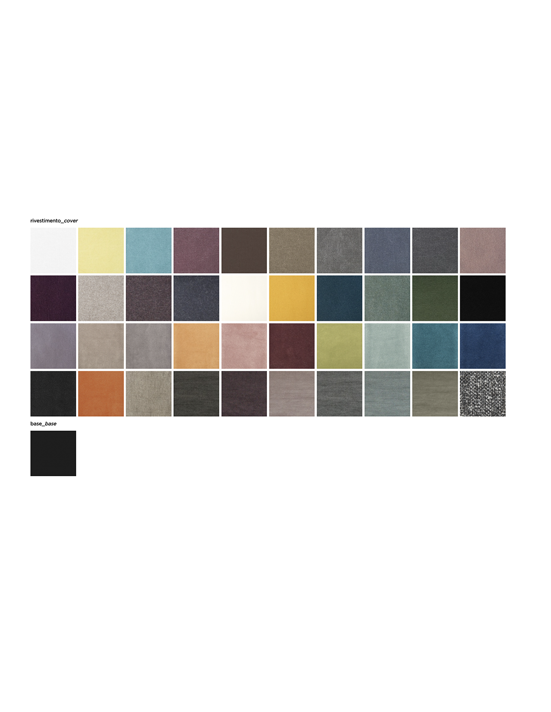 - Rivestimenti: oltre 40 tonalità di tessuti (bouclè, cotone, lino, panno, velluto o tessuto cliente)