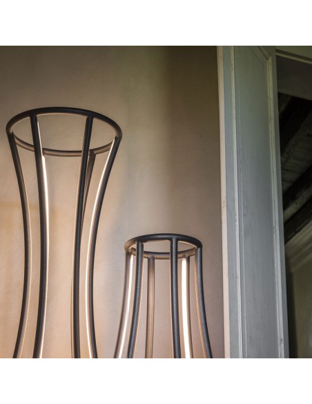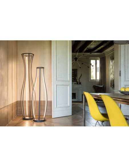PENELOPE è una lampada da terra che è inno alla bellezza e all'intelligenza femminile: nasce dalla sintesi di un segno, sinuoso e armonioso come il profilo perfetto di una donna.