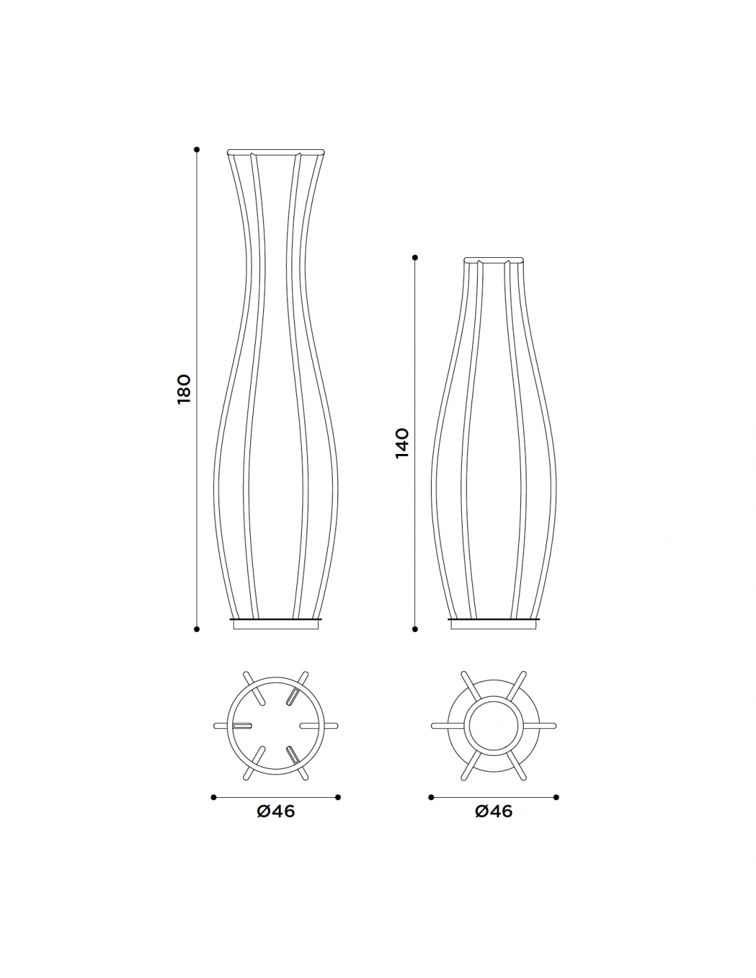 - Dimensioni: Diam. 46 x H. 140 / Diam. 46 x H. 180