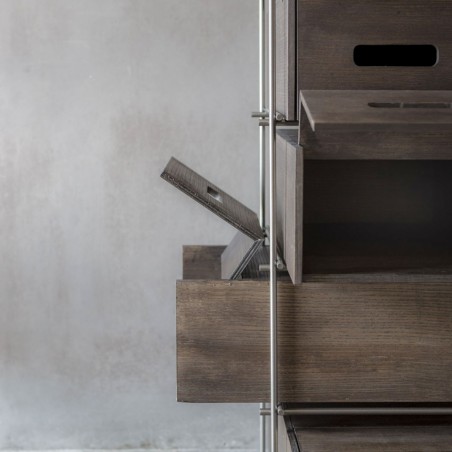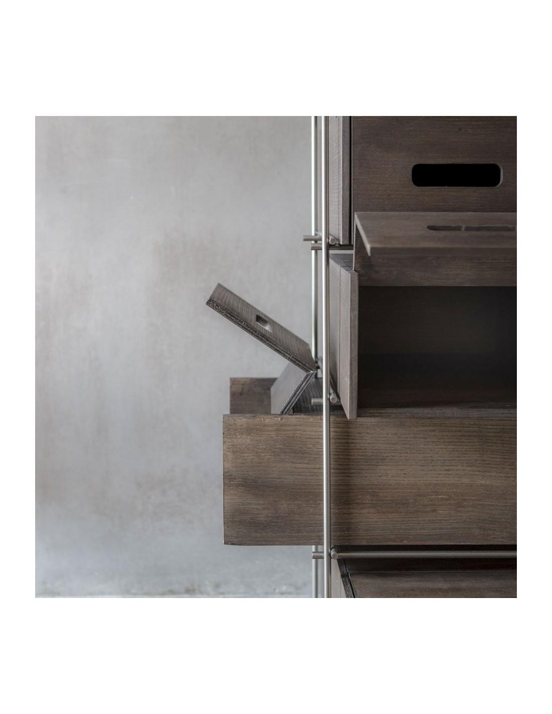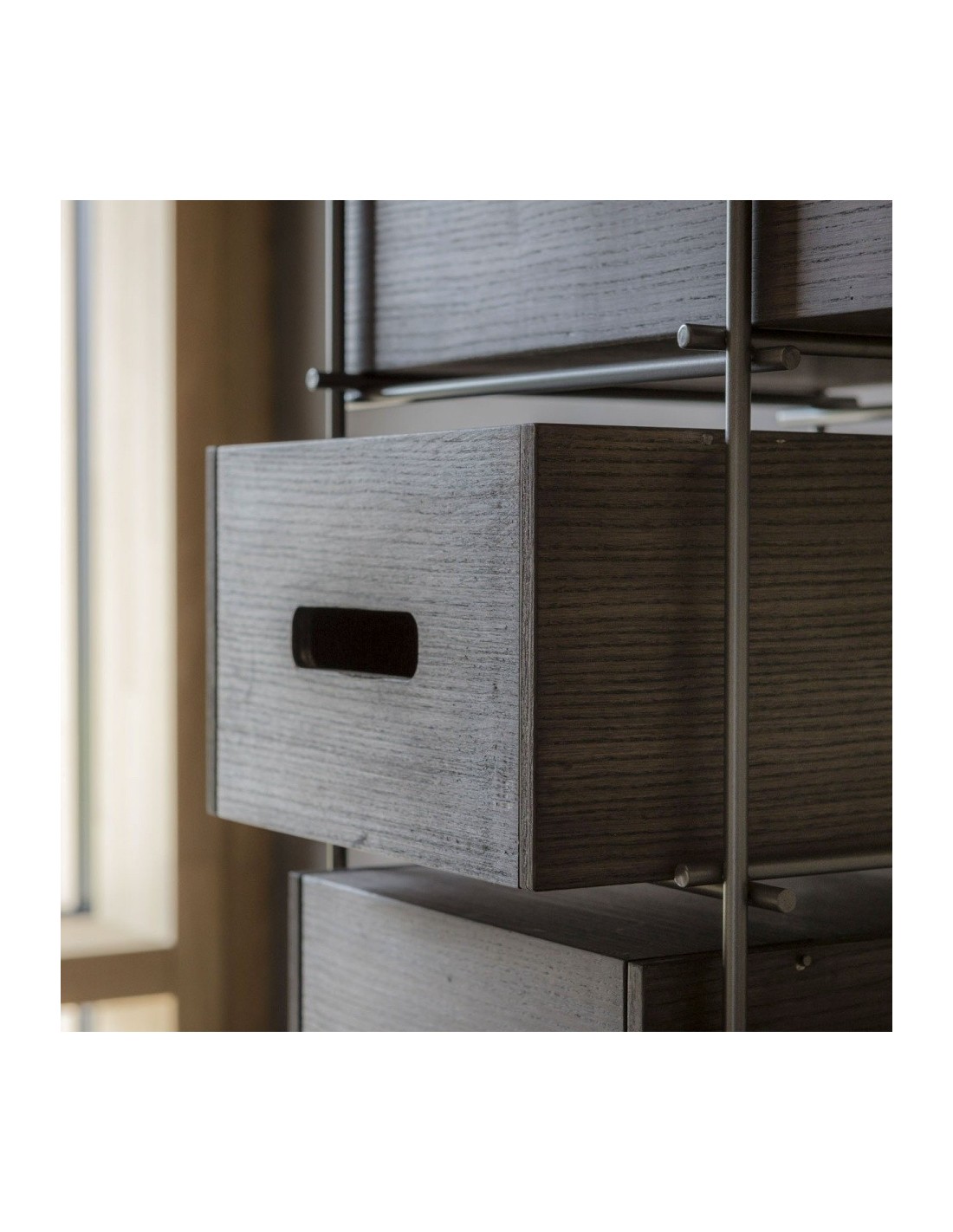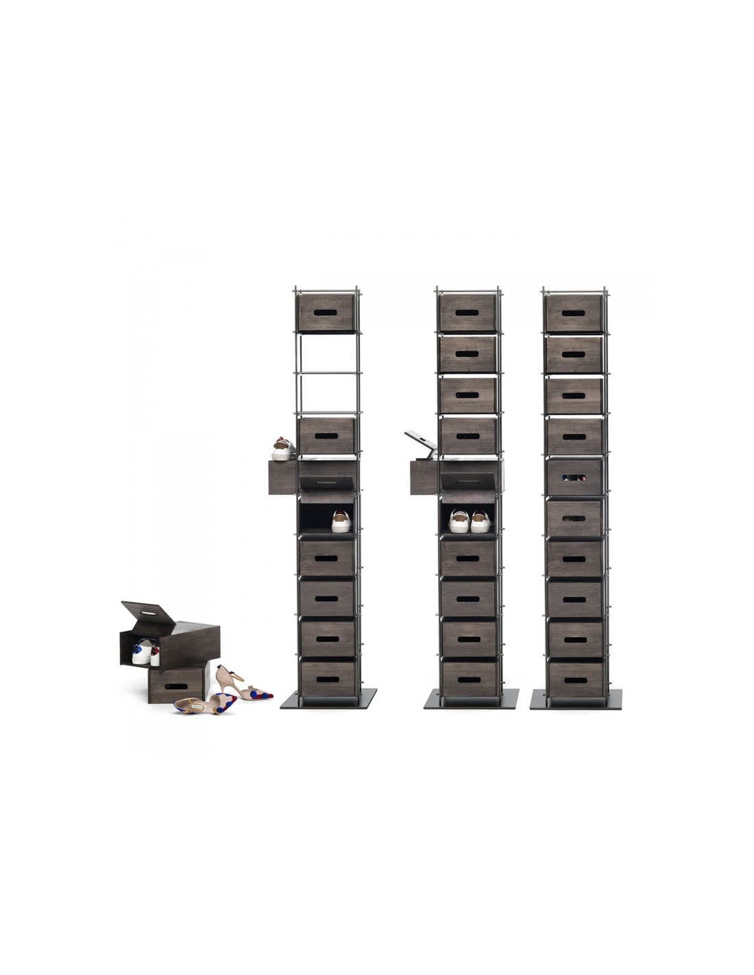 Manolo rivoluziona il concetto di scarpiera. Fiera e forte non va nascosta ma esibita con fierezza: la struttura in ferro e i cassetti in frassino massello colore moka, sono elementi di un concetto del tutto nuovo e funzionale che si mostra nella sua elegante compostezza. Manolo è una scarpiera che non si deve nascondere ma che vuole essere esibita nell’ambiente domestico.