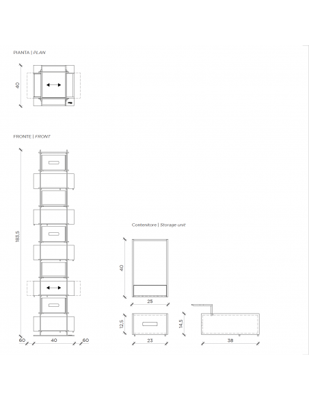 - Dimensioni: L. 40 x P. 40 x H. 182.5 cm
