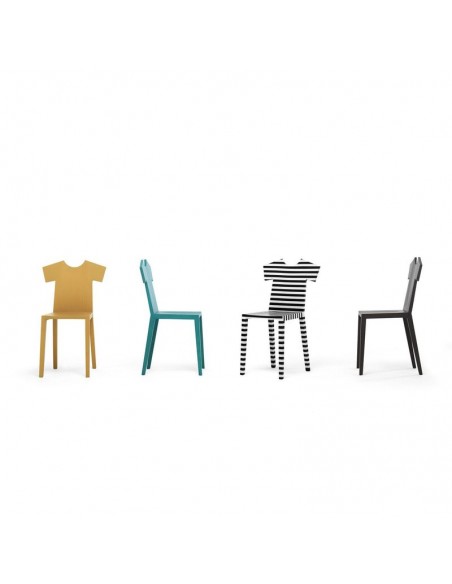 T-CHAIR nasce dalla fantasia creativa della designer Annebet Philps che si è lasciata ispirare dalla T-Shirt, da cui deriva anche il nome.