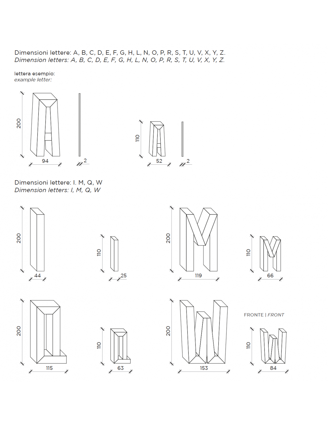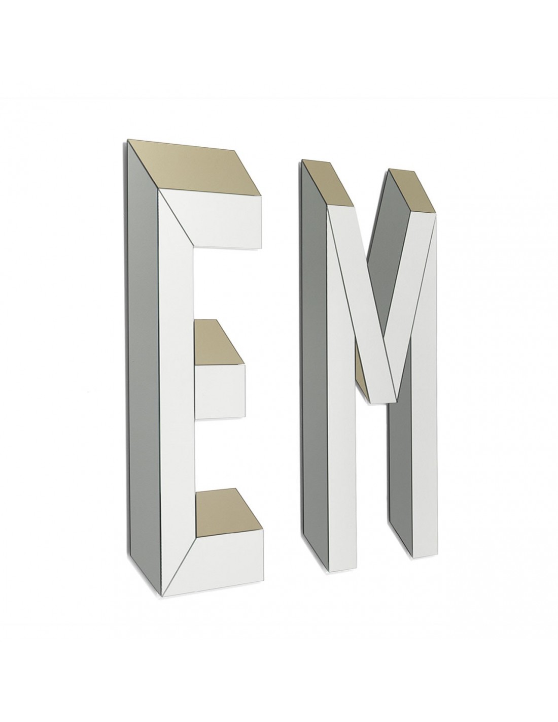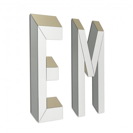 - Finiture specchio: silver per la parte centrale della lettera, fumè e bronzo per i laterali per creare l’effetto 3D.
