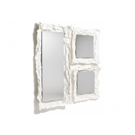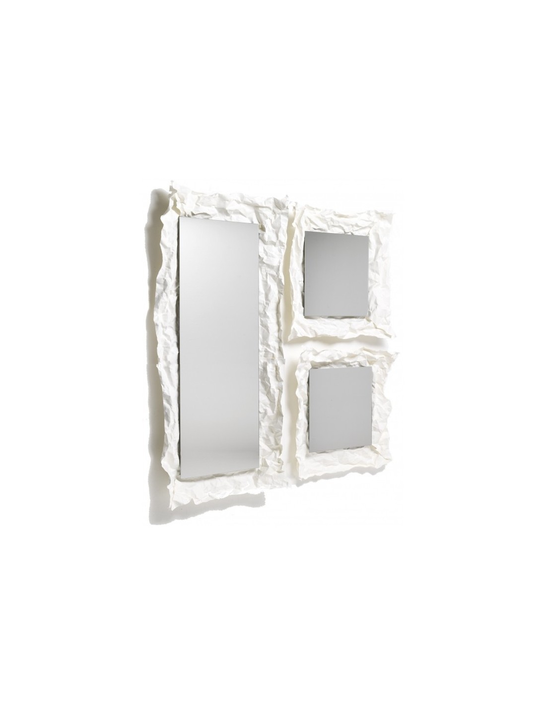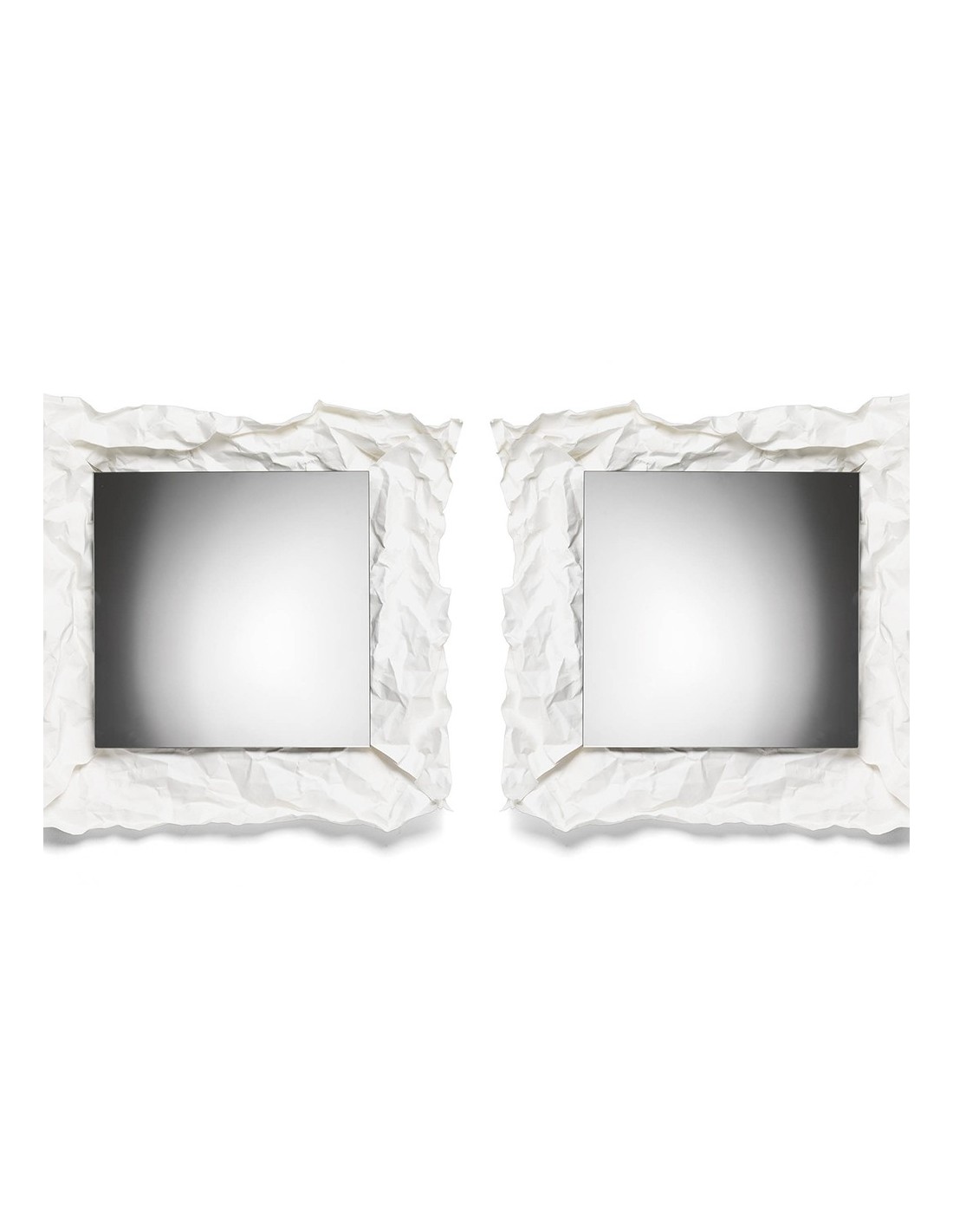 Il designer BALMORAL ha immaginato uno specchio con una cornice di cellulosa sintetica da stropicciare a piacimento. Con questa idea che ne dite di modificare l'oggetto ogni giorno in modo da conferire un'immagine sempre diversa? E' disponibile nella versione bianca e nella forma quadrata o rettangolare. La cornice aperta misura 20 cm su tutti i lati, venendo stropicciata misura circa 12 cm.