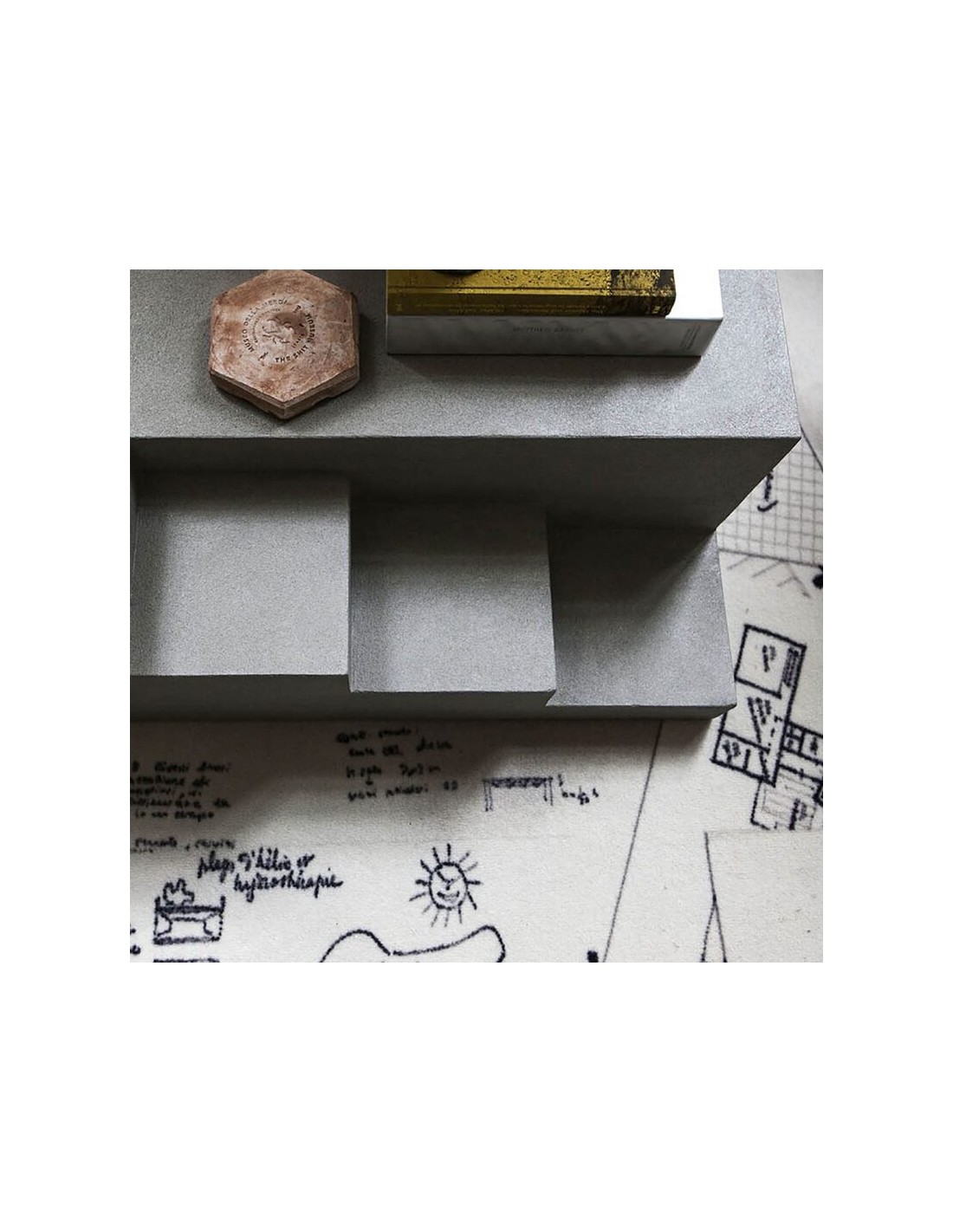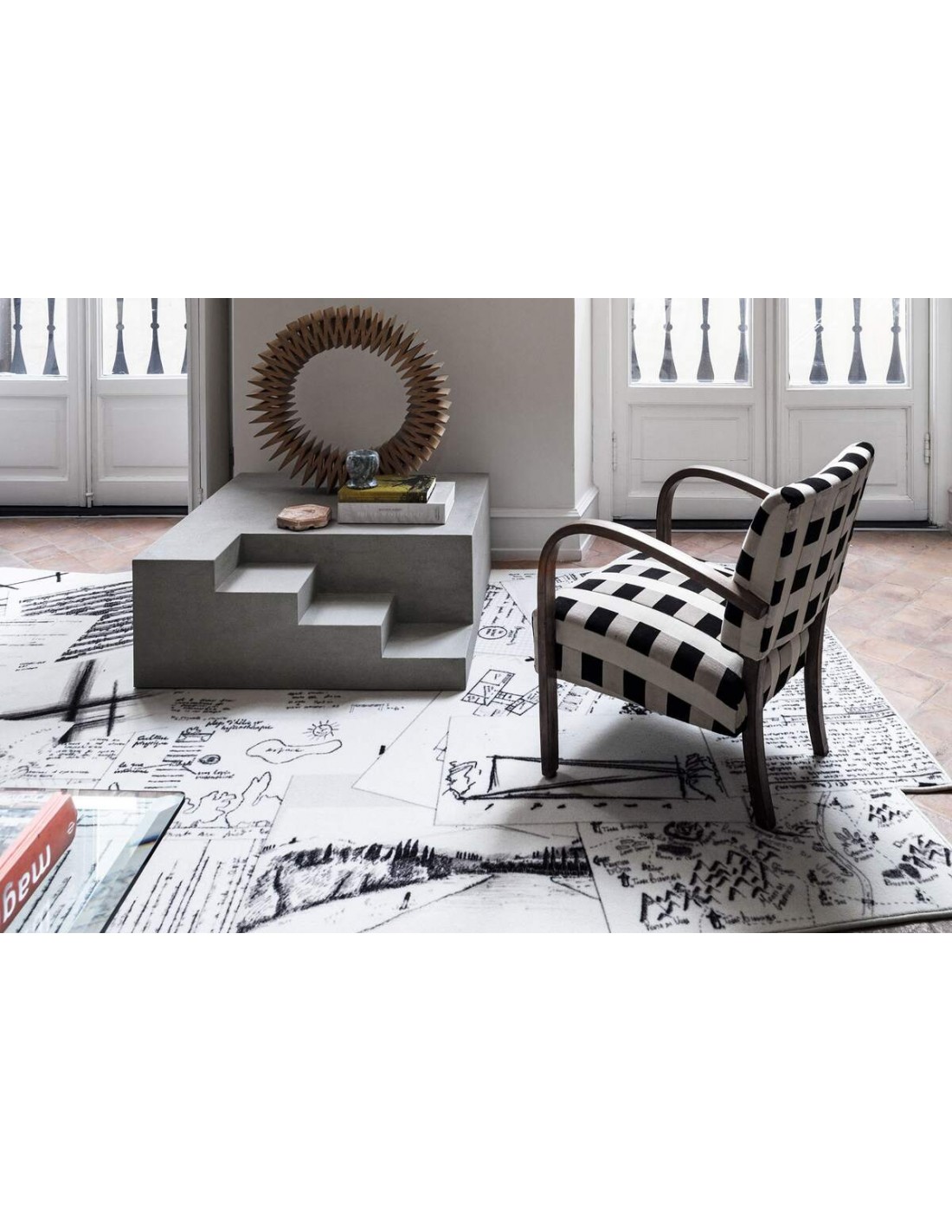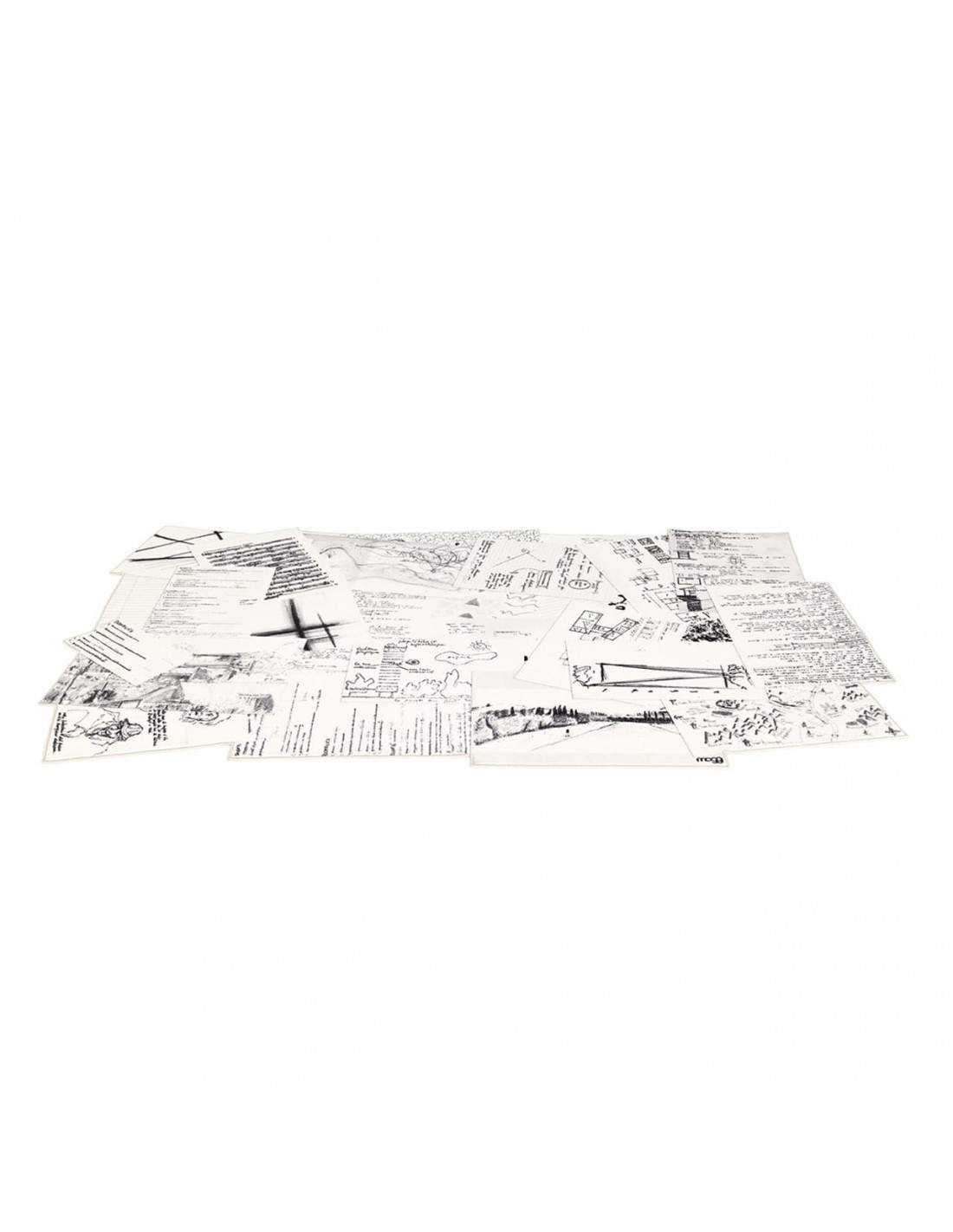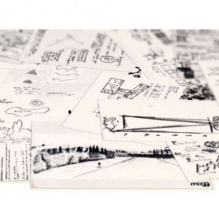 Appunti è tappeto stampato, con bordo a filo disegnato da Studio 14 per Mogg. I designer si sono inspirati a fogli di sketch book riposti poi sul pavimento dando un forte senso di movimento nonostante il tappeto sia un elemento fisso e statico dell'arredo, questo è geniale.il tappeto è incentrato sul bianco e nero e rappresenta veri e propri appunti a mano.Perfetto per il tuo living ma sarai tu a scegliere il suo meritato posto nella tua casa.
