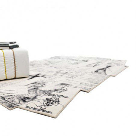 Il design di Studio 14 prende forma ancora una volta per Mogg in uno splendido tappeto bordo a filo che raffigura fogli di appunti sparpagliati sul pavimento. Di sicuro un pezzo d'arredo da avere in casa magari nel tuo living.