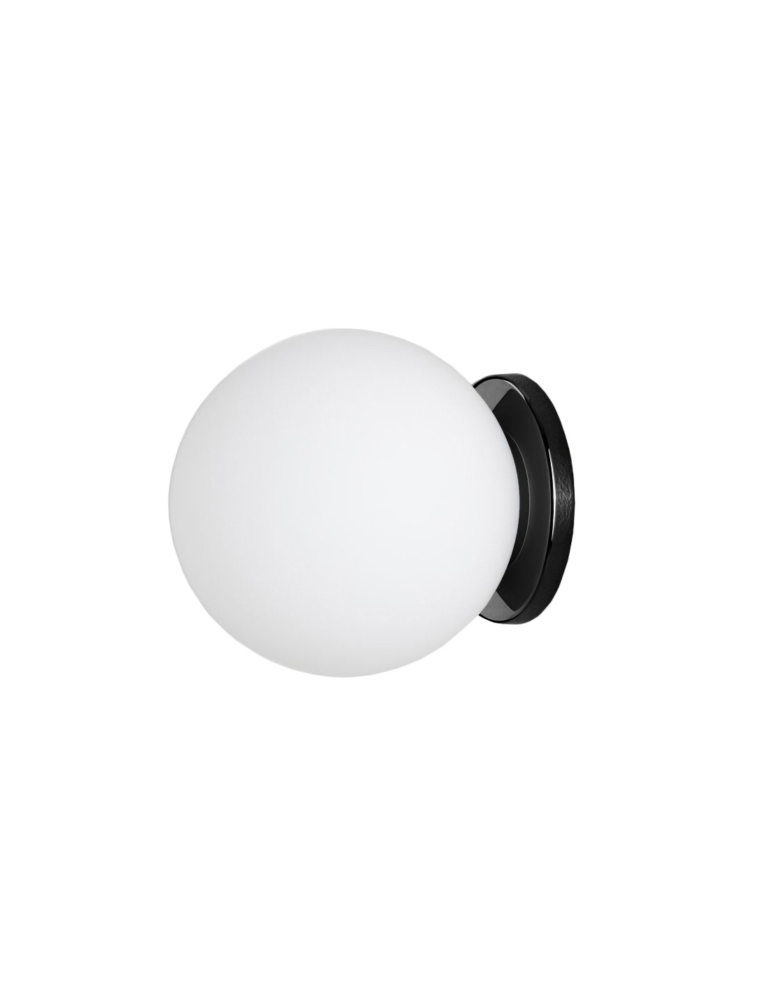 Lampada da parete/plafone a luce diffusa dimmerabile. Montatura in metallo galvanizzato. Diffusore in vetro soffiato satinato opalino. Fonte luminosa non inclusa.