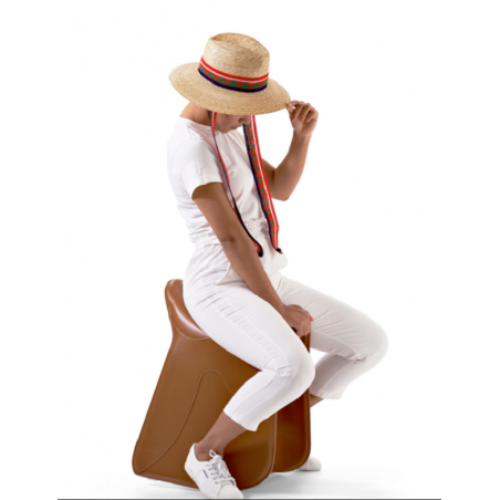 Seduta iconica che prende ispirazione dalla sella da equitazione. Struttura in acciaio con rivestimento in cuoio pieno fiore conciato al vegetale, cucito a mano. La geometria della base a slitta consente un movimento di inclinazione che favorisce la giusta postura. Un complemento d’arredo questo disegnato da Raffaella Mangiarotti, certamente evocativo ma non per questo meno pragmatico. Pepe garantisce comfort ed ergonomia grazie alla base a slitta che accompagna l’inclinazione e di conseguenza favorisce una postura corretta. Un pezzo identitario adatto a molteplici contesti, aree conviviali e di svago, lounge, luoghi di lavoro o nelle nostre case. Dovunque si senta il bisogno di una seduta che sia pepe, intensa e immediata, sorprendente e duratura.