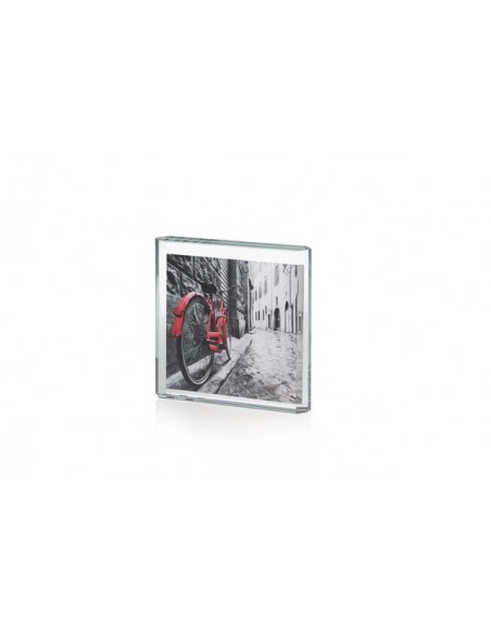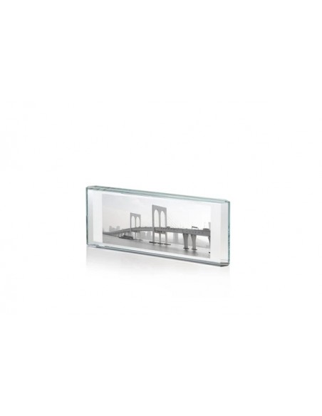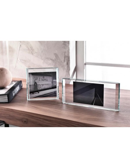 Portaritratto composto da due lastre in cristallo extrachiaro con bordi molati inclinati 45°.