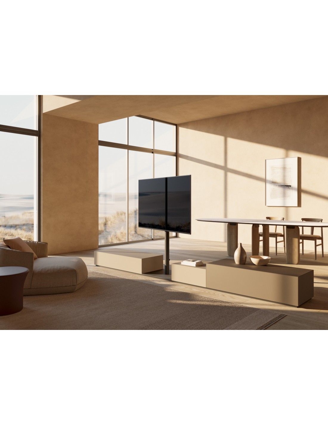 Grazie al suo design essenziale, ai materiali solidi e alla possibilità di rotazione, TVU diventa non solo un elemento funzionale per il supporto del televisore, ma anche un pezzo d’arredo di forte personalità.