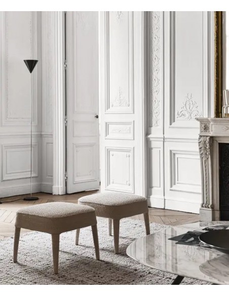 Il Pouf Febo è un complemento distintivo della famiglia Febo, che porta con sé il linguaggio estetico di linee morbide, schienale avvolgente (anche se nel pouf non c’è uno schienale) e volumi confortevoli. Pensato per essere versatile, può essere inserito come seduta aggiuntiva, poggiapiedi o elemento decorativo. Il rivestimento in tessuto o pelle, abbinato alla struttura in metallo e alla base in legno massello, con cuciture artigianali a punto cavallo, valorizza l’oggetto sia dal punto di vista estetico che funzionale.