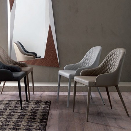 La poltroncina Betta ha uno schienale avvolgente che garantisce un'ottima seduta. Ha una struttura in metallo ed è interamente rivestita in pelle con interno dello schienale trapuntato.