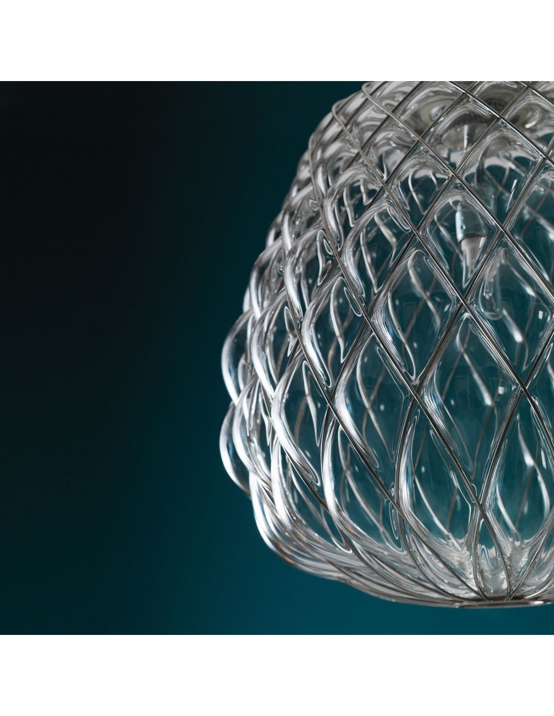 PINECONE è la lampada a sospensione, prodotta con l'antica tecnica del vetro soffiato ingabbiato