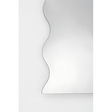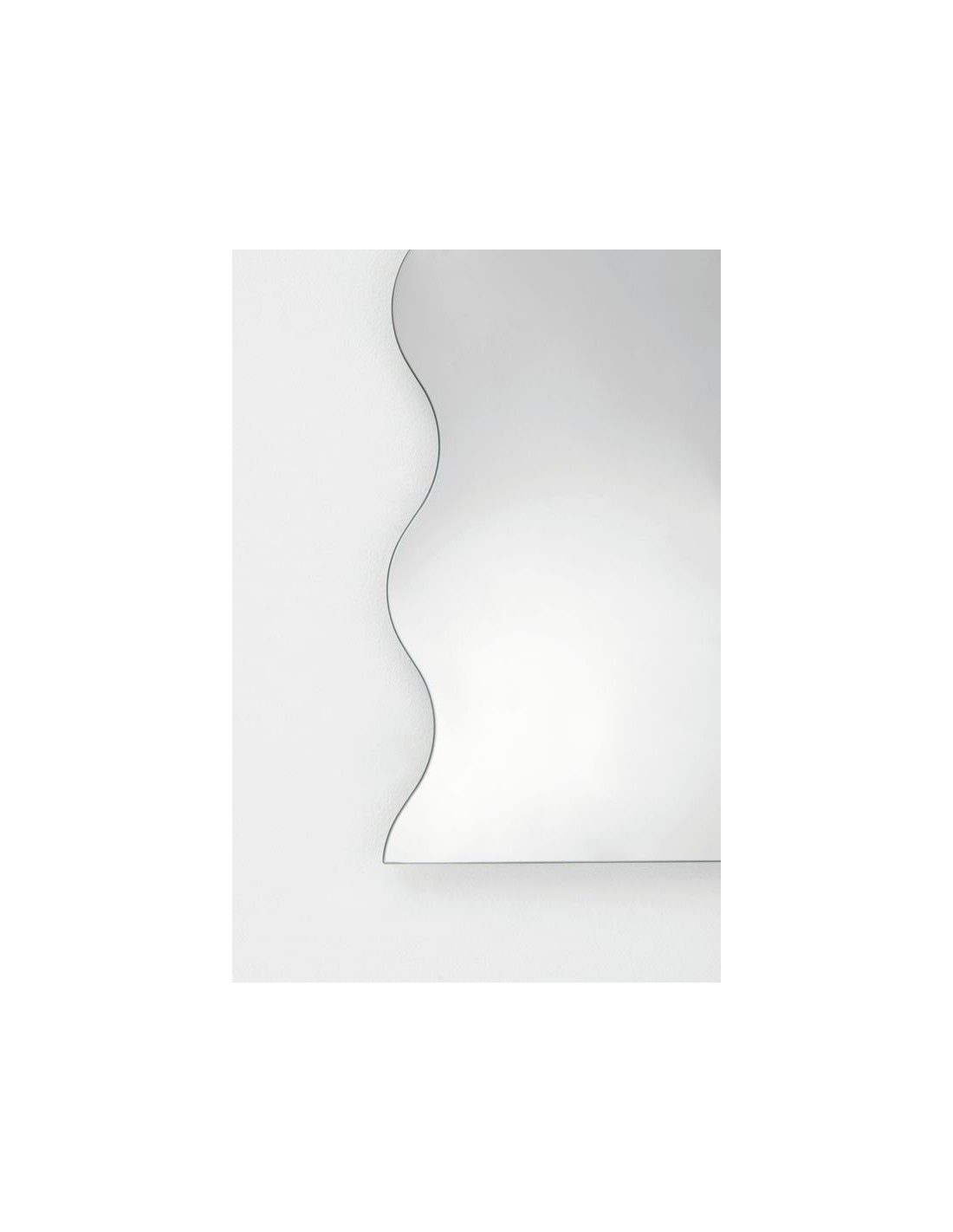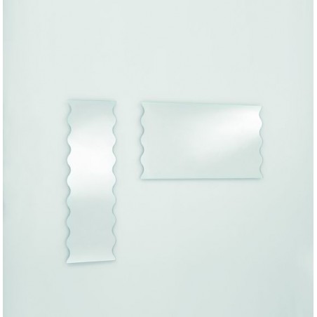 Specchio con due bordi ondulati. Disponibile in tre dimensioni diverse. Disponibili con doppi attacchi orizzontali e verticali.Onda riprende le sinuose linee del mare che ondeggia rilassato e calmo per donare la stessa sensazione in casa tua.
