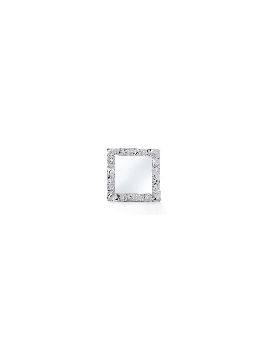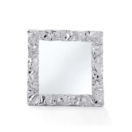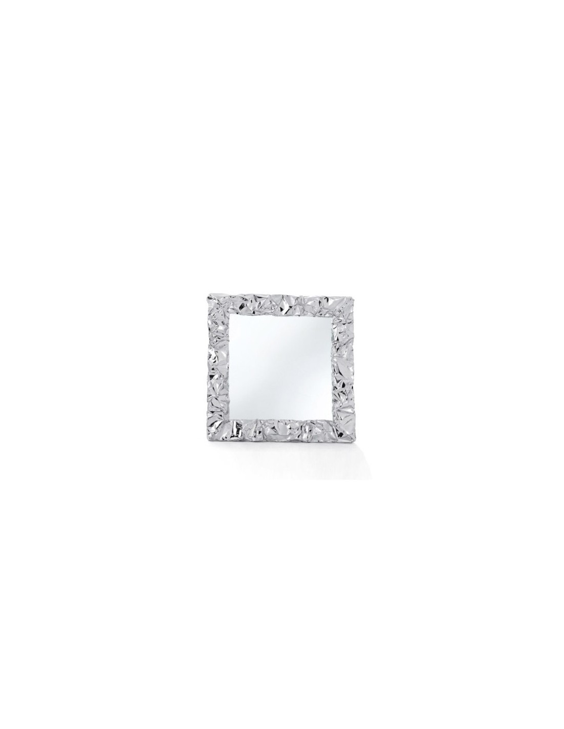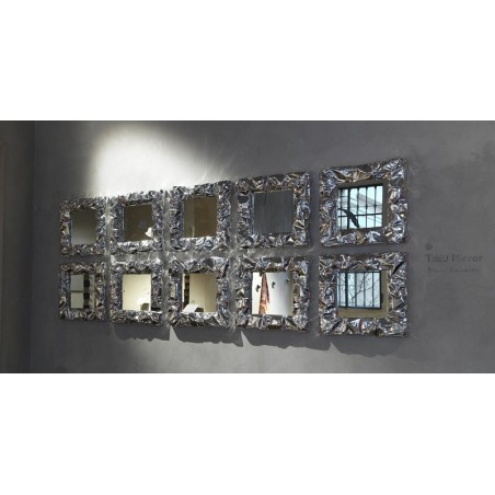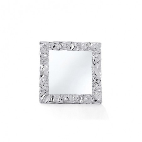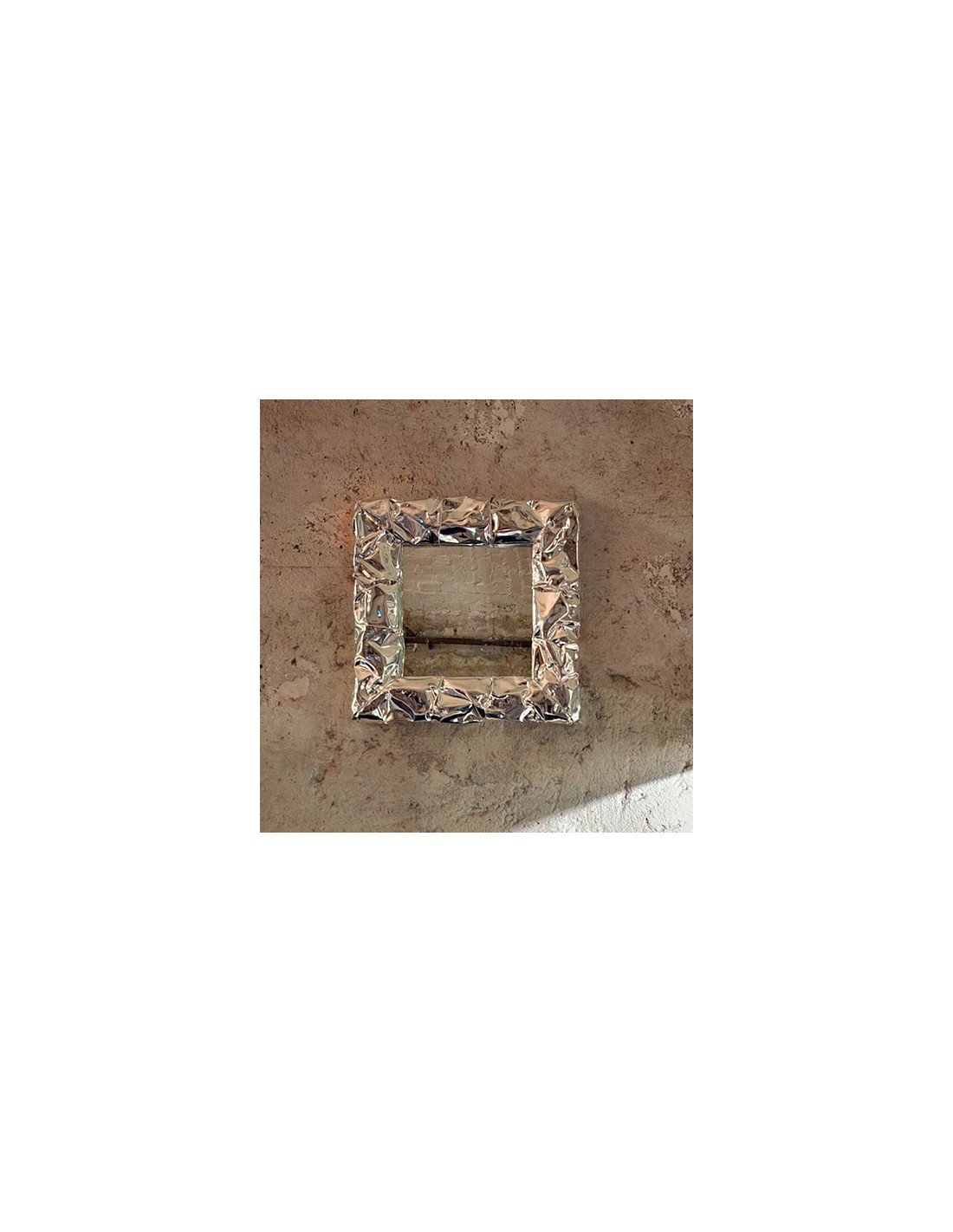 Specchio quadrato modellato a mano con cornice in alluminio che ricorda la carta stropicciata