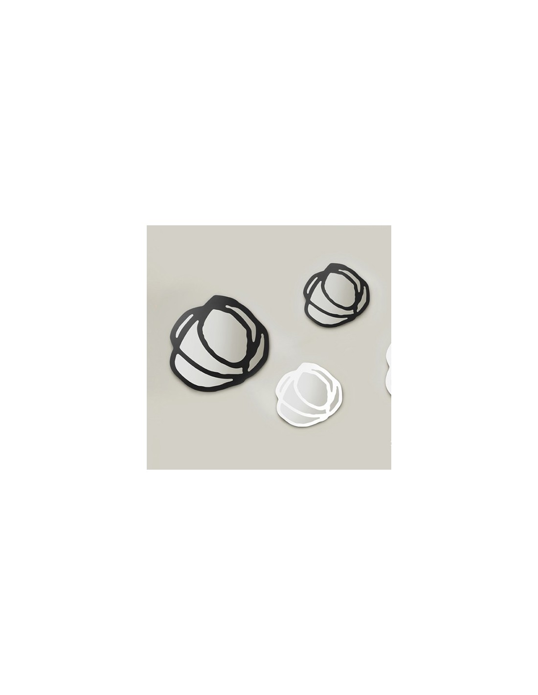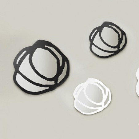La designer Paola Navone realizza per Gervasoni questa collezione di specchi caratterizzata da un decoro a forma di rosa di colore biano o nero che lo rende particolarmente decorativo