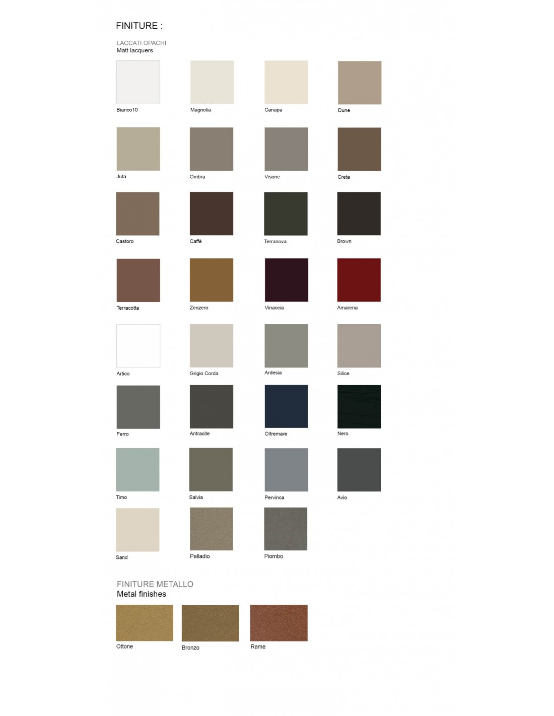 Struttura: Materiali e finiture Sangiacomo (legno, metallo, vetro a seconda della versione)