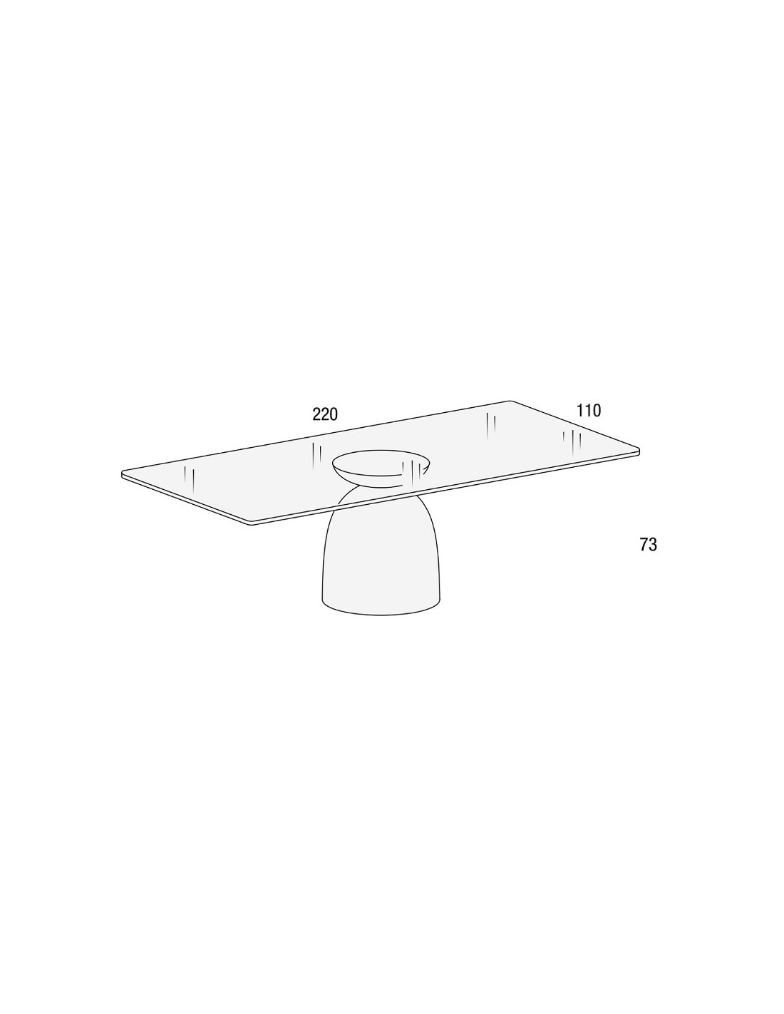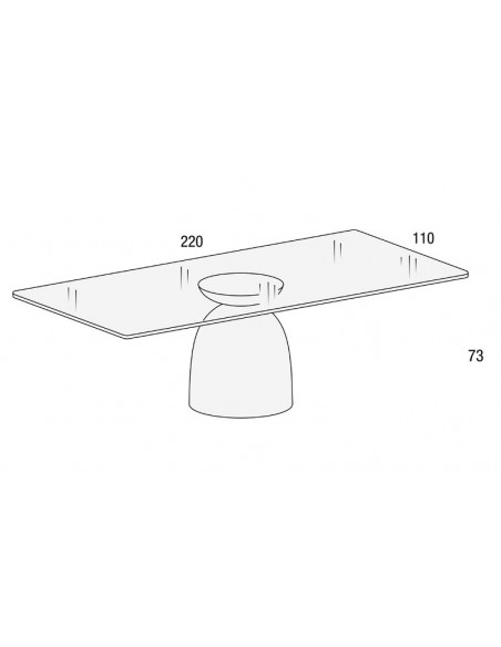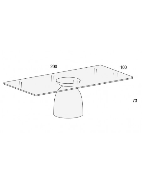 La forte base del tavolo è formata da due cupole che si sovrappongono e che sul loro grande equilibrio accolgono il piano del tavolo disponibile in forma circolare o rettangolare .