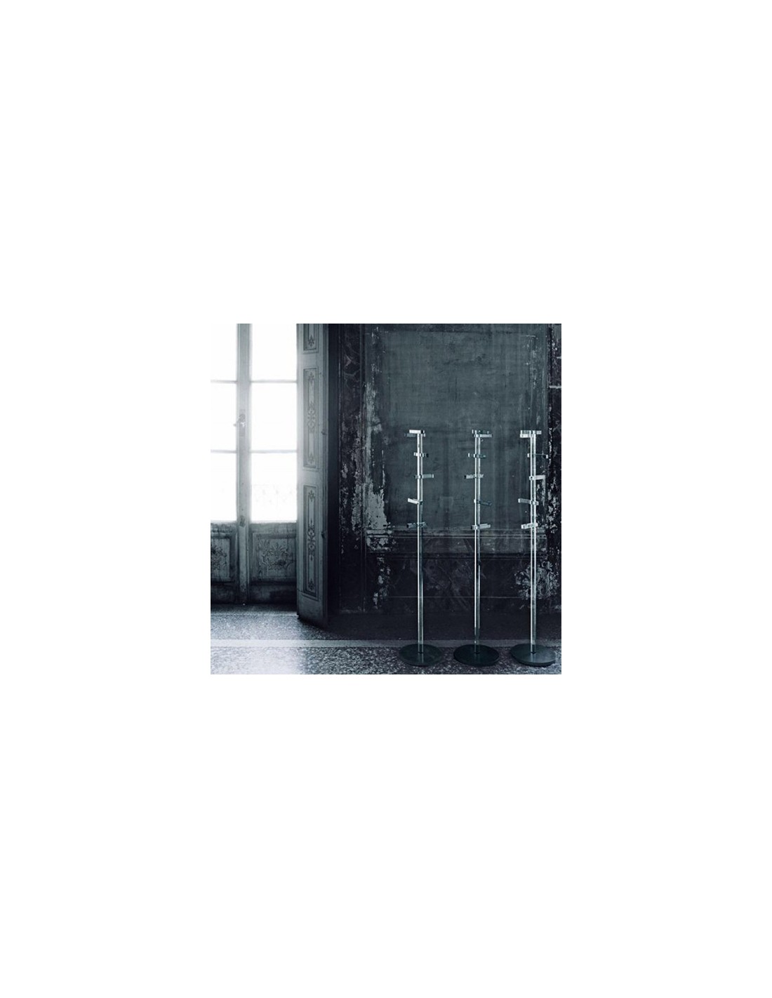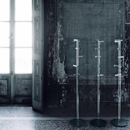 Appendiabiti da terra di grande leggerezza e rigore formale. Lo stelo, realizzato incollando barre quadre di cristallo trasparente da 24x24 mm., è fissato mediante un sistema ad incastro ad una base in metallo verniciato nero opaco di grosso spessore. Nonostante l’estrema esilità delle sezioni, il cristallo, grazie ad uno speciale trattamento di tempera, assume un’incredibile resistenza ai carichi.Telegrafo è un oggetto di estrema eleganza ed importanza che dona all'ingresso della tua casa o dell'ufficio un tocco unico ed essenziale, inimitabile.