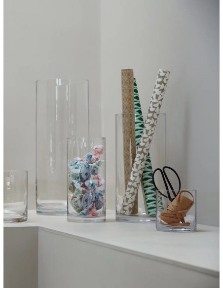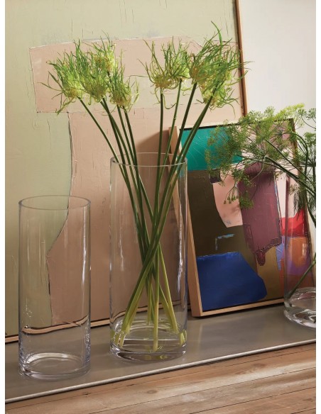 La forma cilindrica classica, unita alle proporzioni ben bilanciate, permette al vaso di inserirsi con discrezione tanto in spazi minimal quanto in contesti più ricchi di texture e colori. Può essere usato per esporre fiori a stelo lungo, fogliame verde o semplicemente come oggetto decorativo da solo, valorizzando superfici di dimensioni ampie o piccole.
