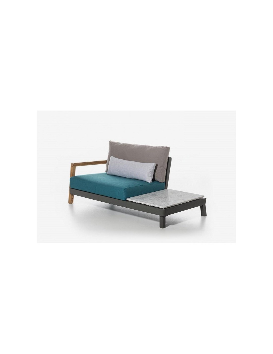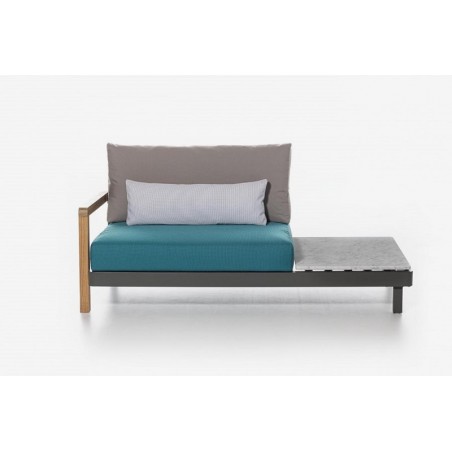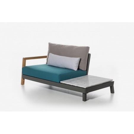 Poltrona / elemento componibile centrale con bracciolo in teak e tavolino integrato Win 117 L / R del brand Gervasoni appartiene alla collezione Win della designer Paola Navone